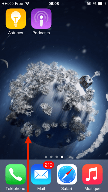– Ouvrez le centre de contrôle, en faisant glisser votre doigt du bas de l’écran vers le haut,