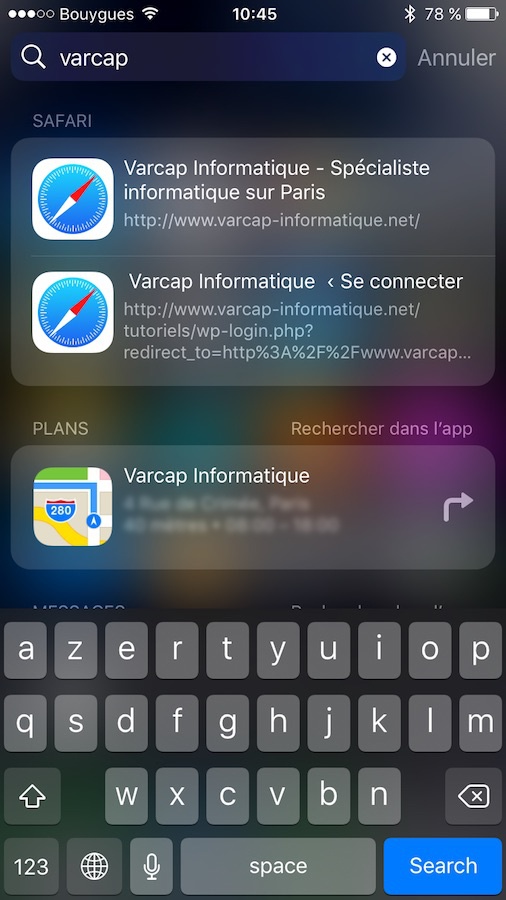Personnaliser et configurer la recherche sous iOS 10 ?
